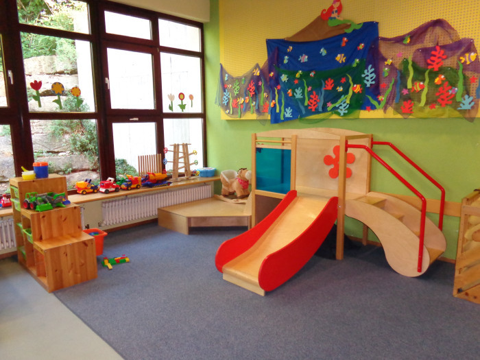 Die Krippenkinder verfügen über einen eigenen kleinen Garten und Schlafbereich.